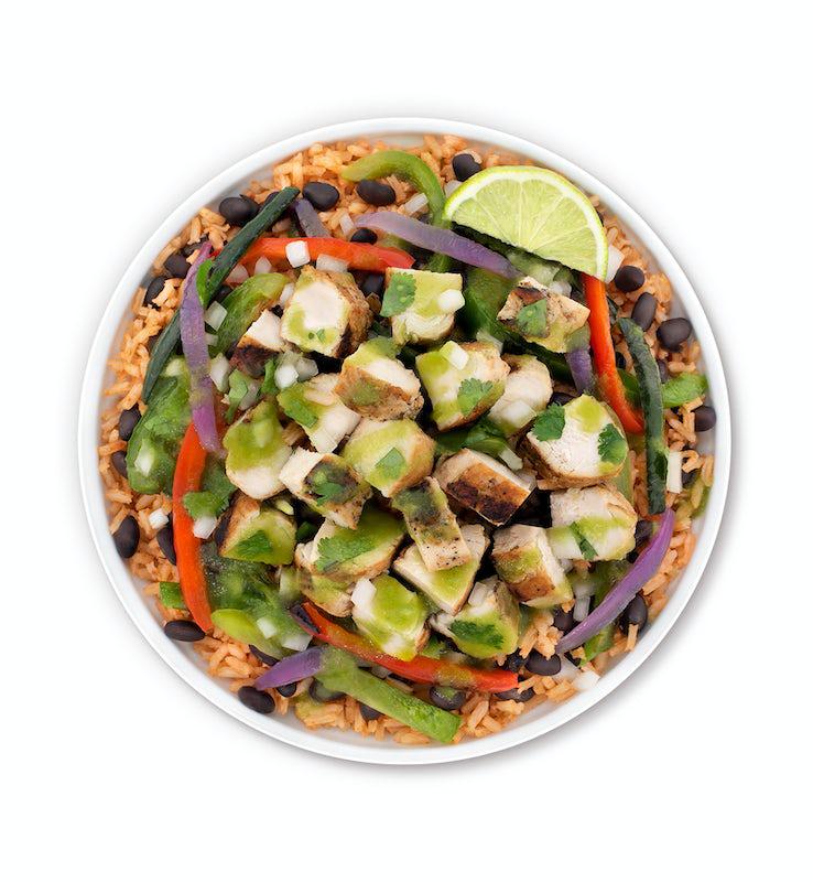 Real flavor for everyone. Order individually wrapped meals for everyone in your party. Each entrée includes chips and one of our signature salsas. 10 person minimum. Choice of protein, rice, choice of black or pinto beans, roasted veggies, salsa verde, onion & cilantro mix.