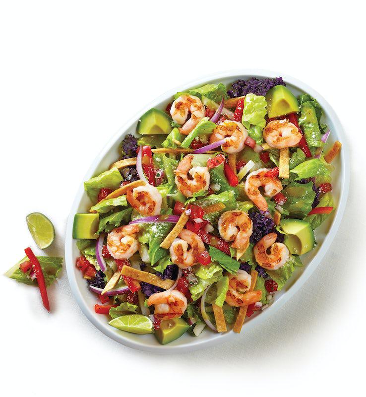 Real flavor for everyone. Order individually wrapped meals for everyone in your party. Each entrée includes chips and one of our signature salsas. 10 person minimum. Lettuce, kale, pico, onion, bell pepper, jicama and tortilla strips, topped with fresh avocado and cotija cheese. Served with chili lime dressing on the side.